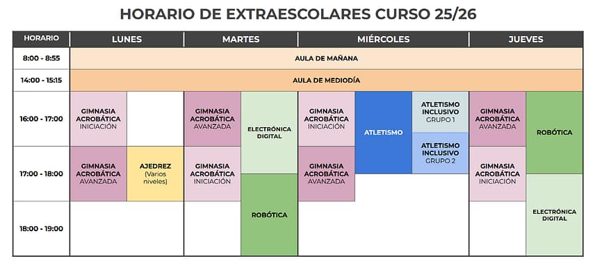 Les animamos a consultar la sección de actividades extraescolares (pinchando aquí), donde encontrarán detalles de los horarios, las actividades y la forma de inscripción.